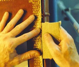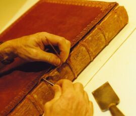 Bookbinders labels are small tickets pasted inside the front cover of bindings. Generally they are found on the upper left corner of the inside cover. They are usually small but can also be larger, bookplate size, with descriptions of the work offered by the binder.